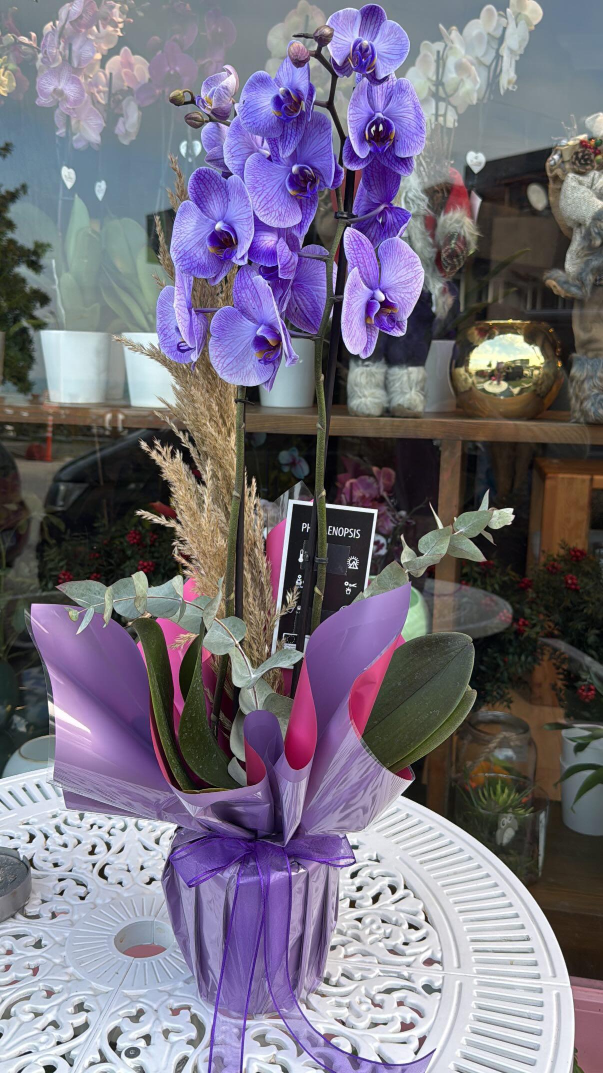 Wonder Orkide mor çift dal orkide, güçlü duruşu ve göz alıcı mor tonlarıyla bulunduğu her ortamda dikkat çeker. İthal kalitede özenle seçilen orkideler, sağlıklı yapısı sayesinde uzun süre canlılığını korur ve bakımı kolaydır.