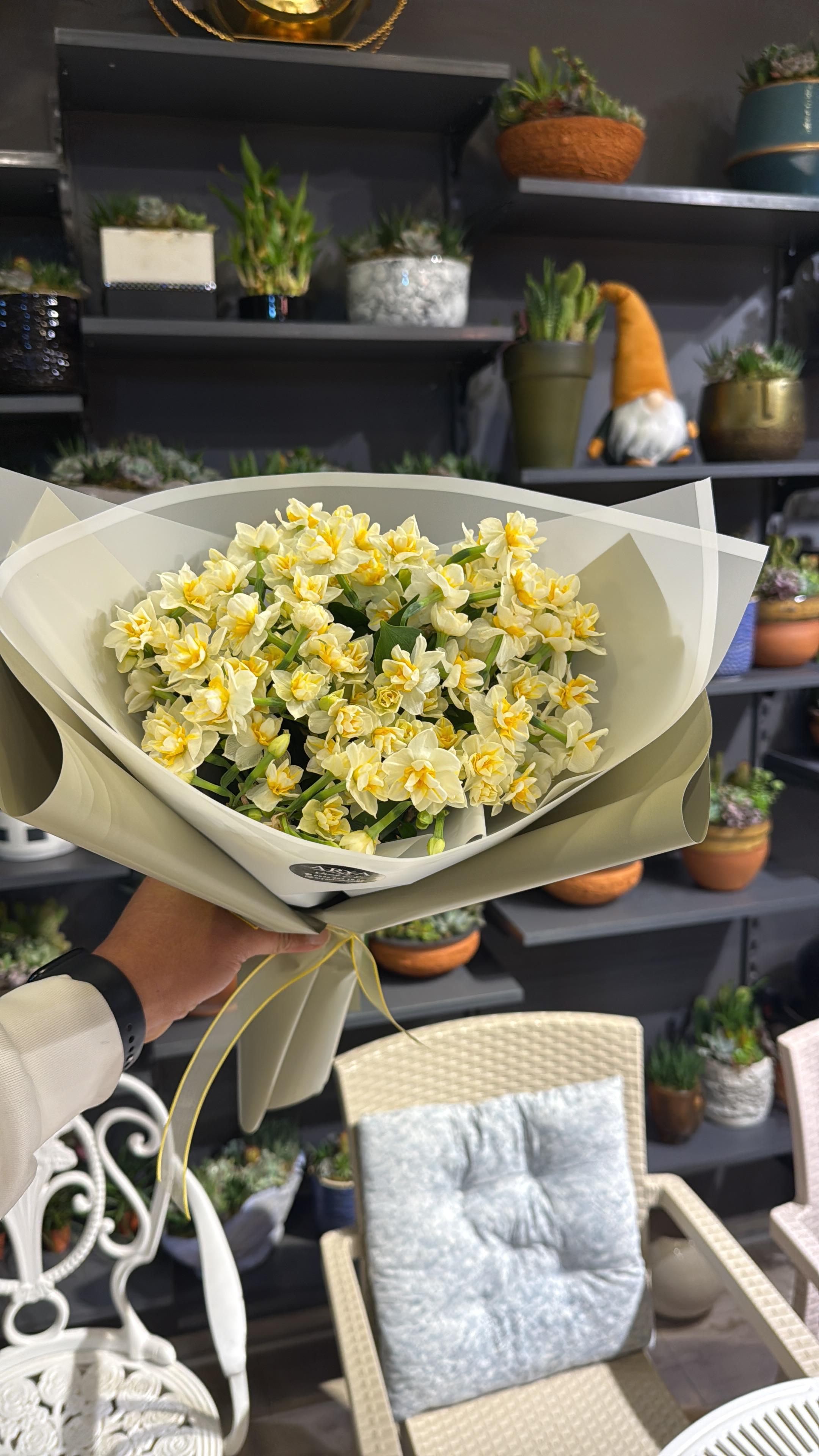 Kaliteli çiçekler ve zarif tasarım anlayışıyla hazırlanan nergis buketleri, duygularınızı en doğru ve taze şekilde ifade etmenizi sağlar.